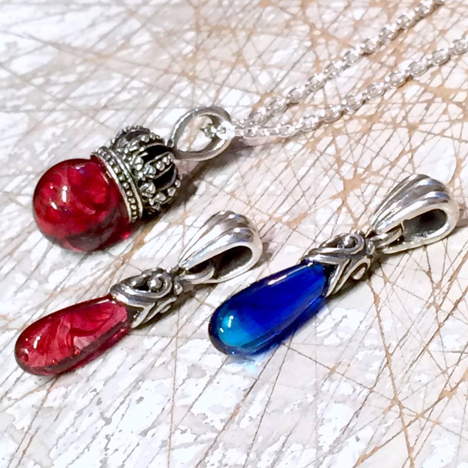 シルバークラウンネックレス/ブラッドレッド グラス