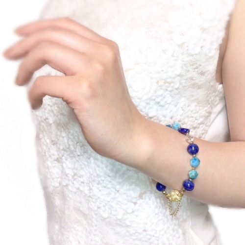 天然石 ラピスラズリ&アパタイト&水晶 マグネットブレスレット(落下防止チェーン付)